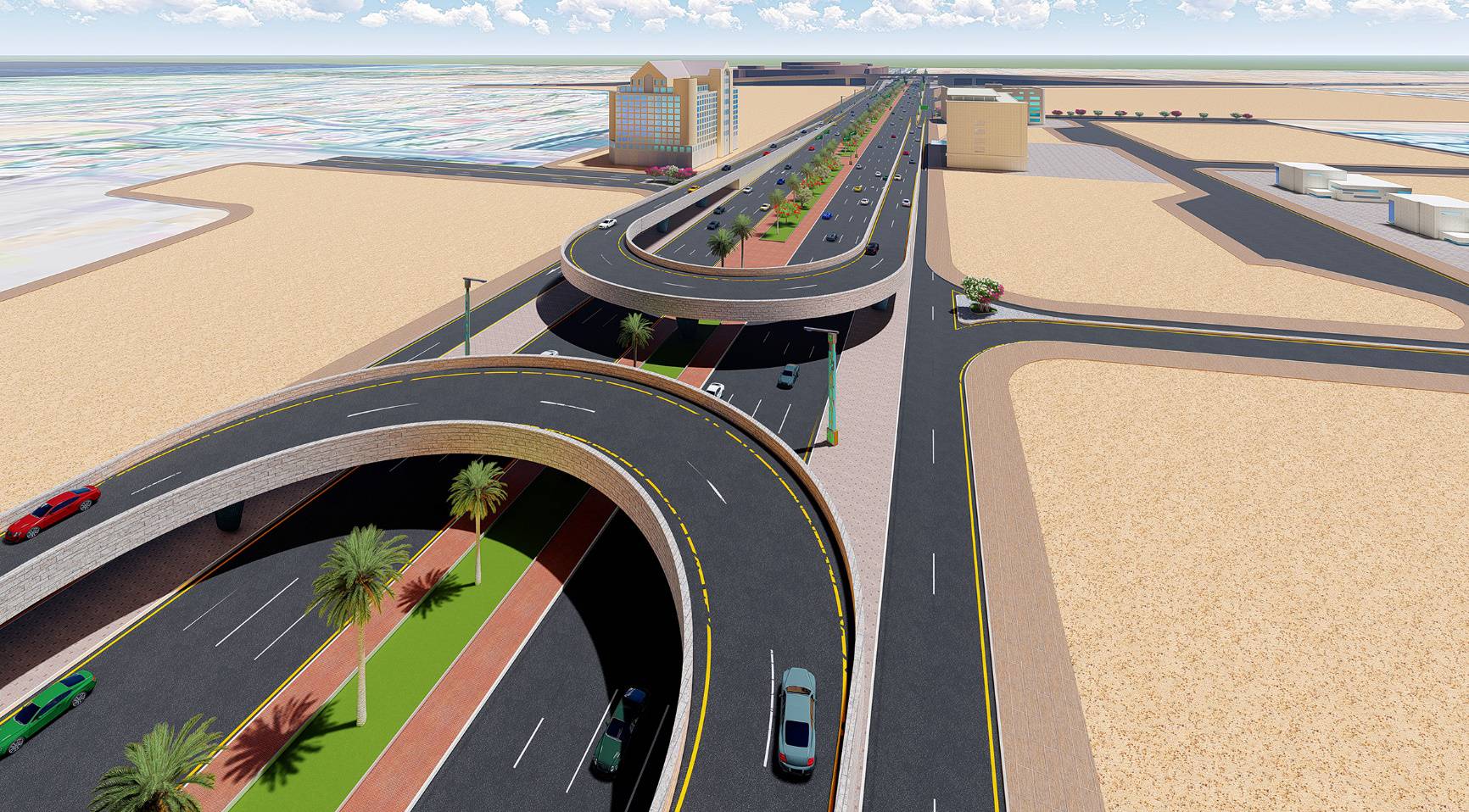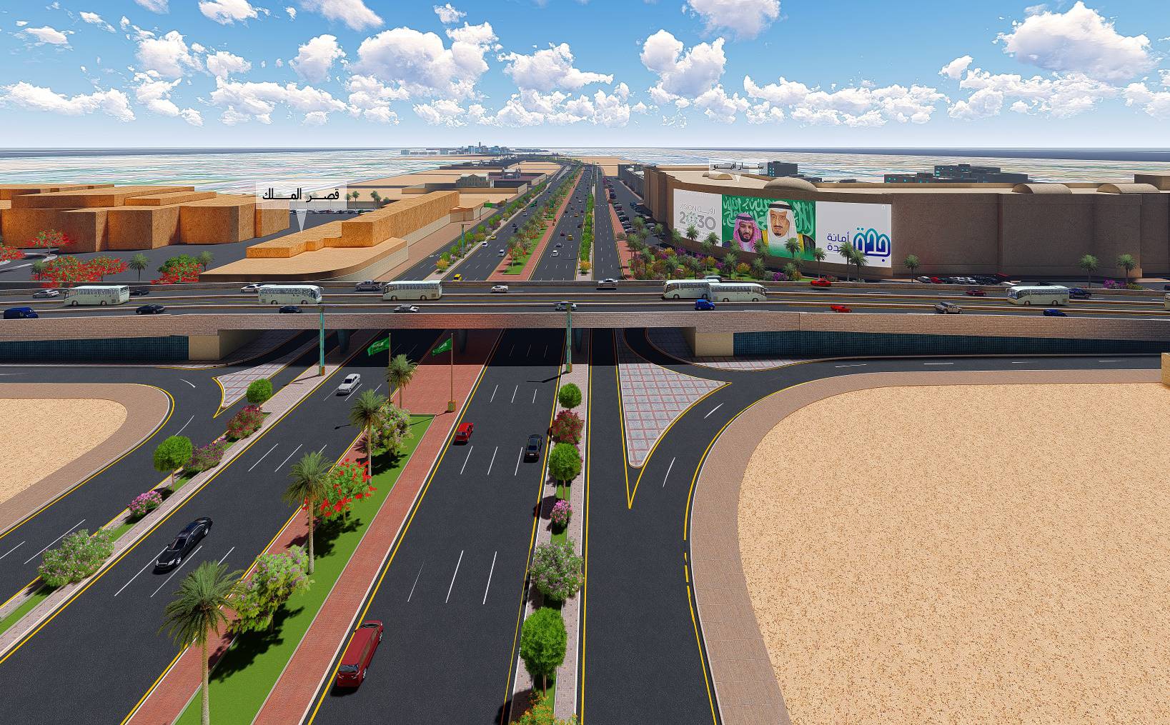 procession. The project aims to design three multilayered intersections of King Abdul Aziz Road intersect