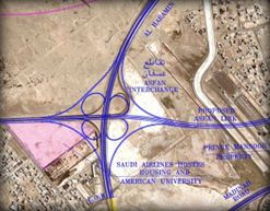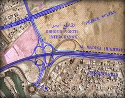The project scope of work include alignment selection, preliminary and final designs, and preparation of tender documents for an 40 km 4-lane dual carriageway comprising 6 grade separated interchanges and 12 crossing bridges. The scope also comprises the detailed design of the required drainage works and flood protection measures to protect the project area against flash floods. It also include landscaping and irrigation, street lighting, and road safety features.
