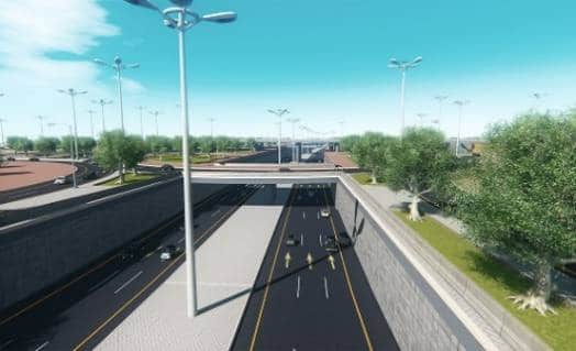 roundabout and the adjacent 90 meter wide Wadi Abu Nashifa. Access to the roundabout itself will be achieved by service roads