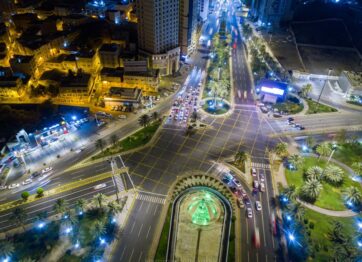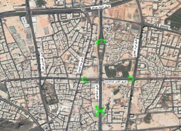 Intersection of King Faisal with Prince Fahd and Prince Sultan Roads in Tabuk (Al-Morooj Roundabout)